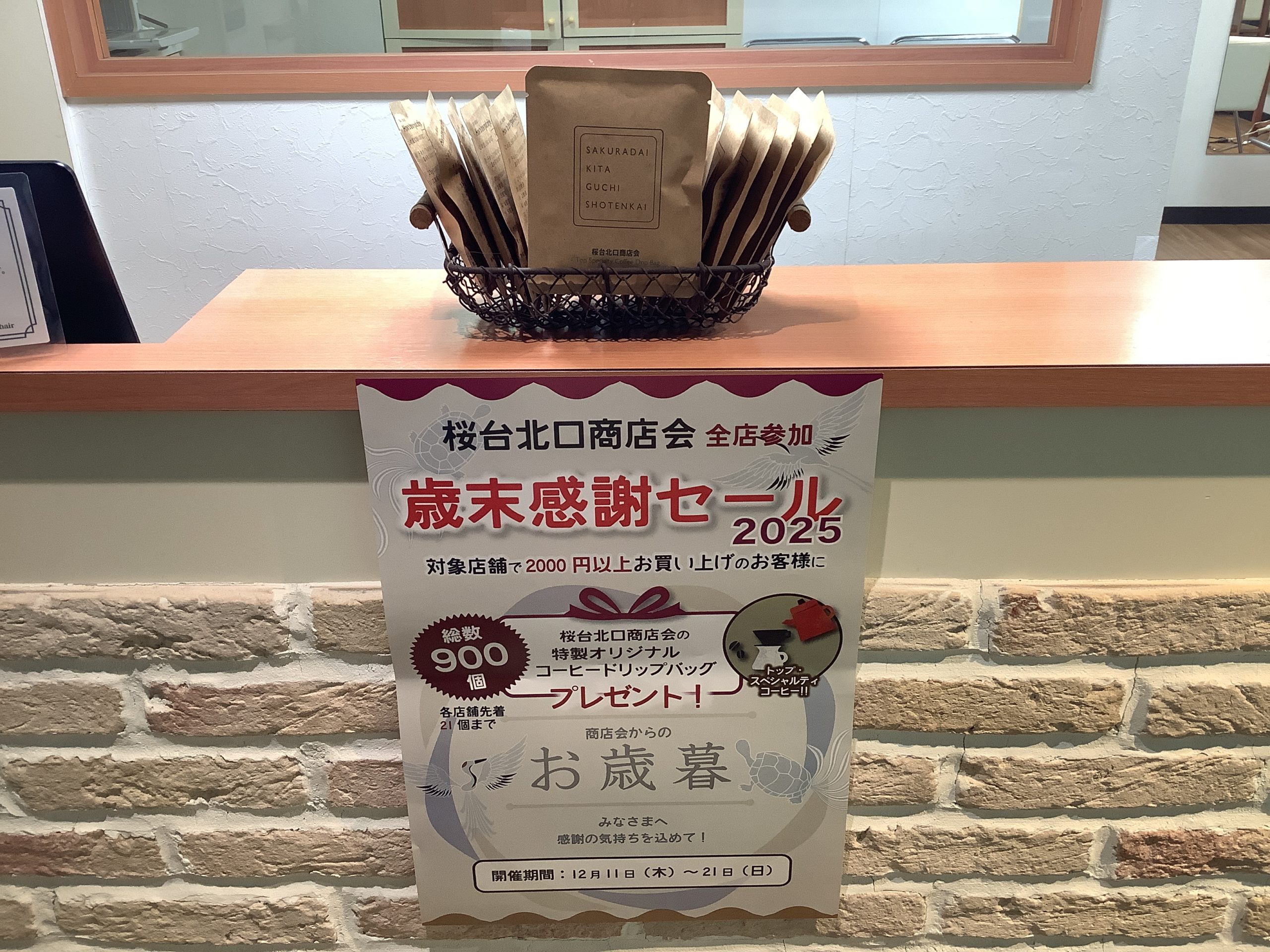 桜台北口商店街キャンペーン12/11 スタートです! 2025.12.10 Tweet Share 練馬区北口商店街のイベントです♪ 先着21名様に『WATER COLOR DRIP COFFEE』さんのコーヒーをお一つプレゼントいたします! ぜひお楽しみに♪ Tweet Share 練馬区pay payキャンペーン 新年明けましておめでとうございます